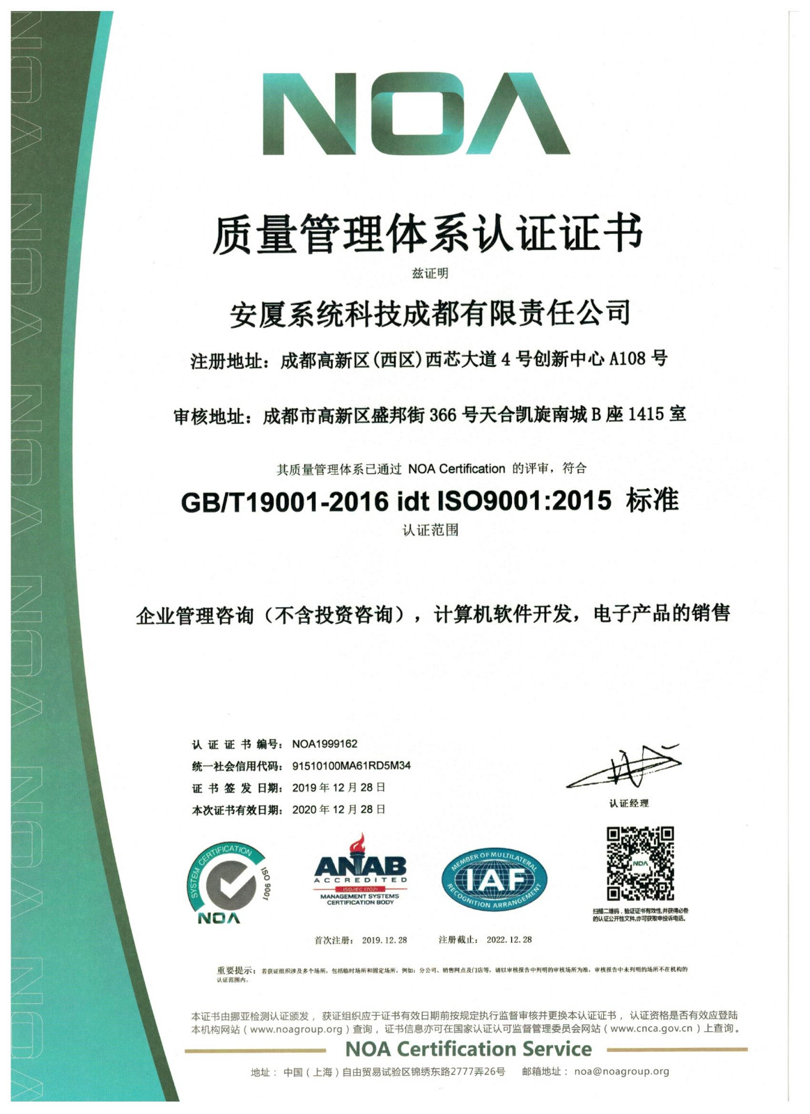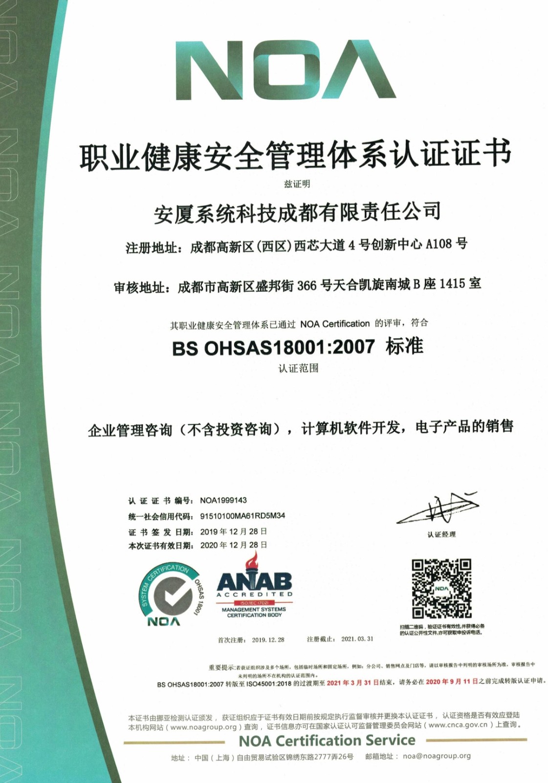 安廈系統(tǒng)科技成都有限責任公司成立于2015年,專注于提供風險管理整體咨詢及技術服務,業(yè)務涵蓋安全健康環(huán)保管理體系咨詢服務、安全生產標準化建設咨詢服務、應急預案咨詢服務、第三方安全監(jiān)管服務、安全培訓服務、安全信息化開發(fā)服務。