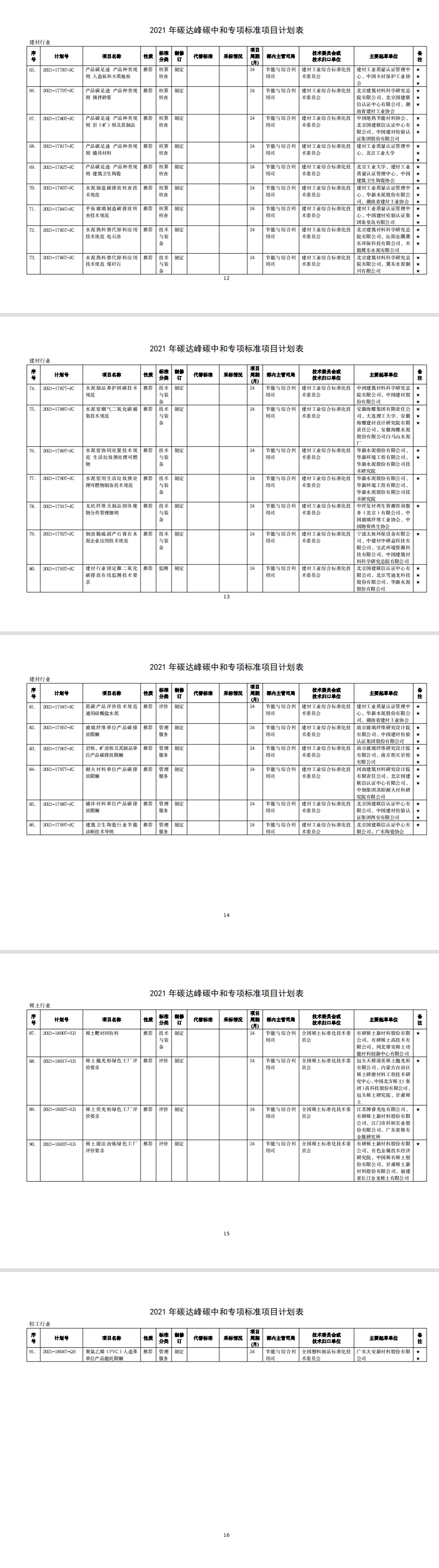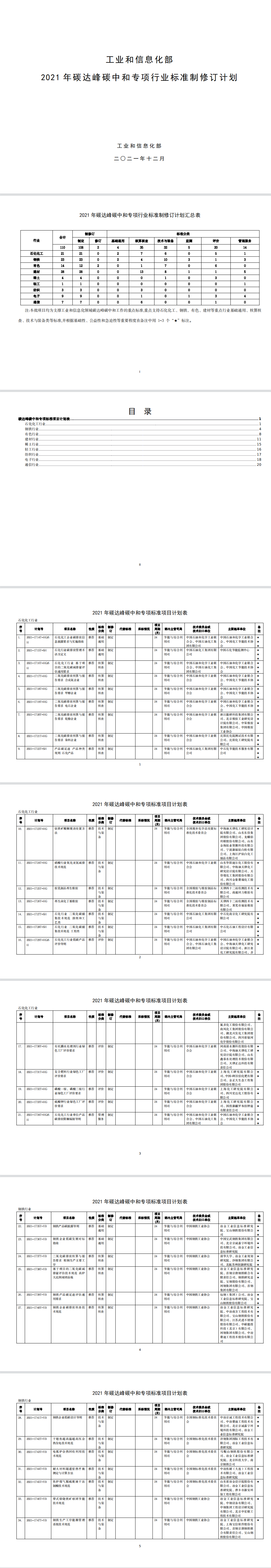 為發(fā)揮標準在推進工業(yè)領域碳達峰碳中和工作的引領和規(guī)范作用,我部編制完成了2021年碳達峰碳中和專項行業(yè)標準制修訂項目計劃?,F(xiàn)印發(fā)給你們,請認真組織落實。有關事項通知如下: