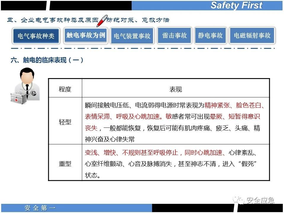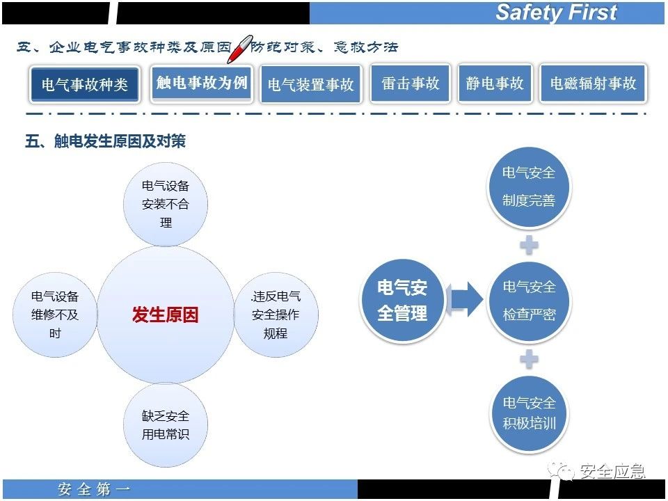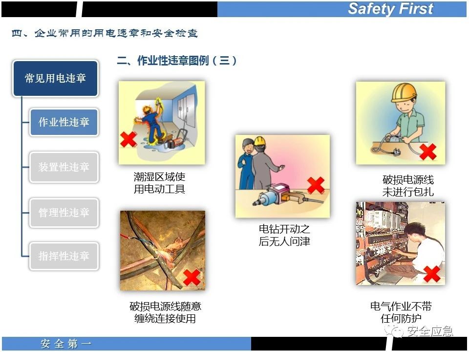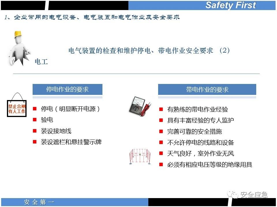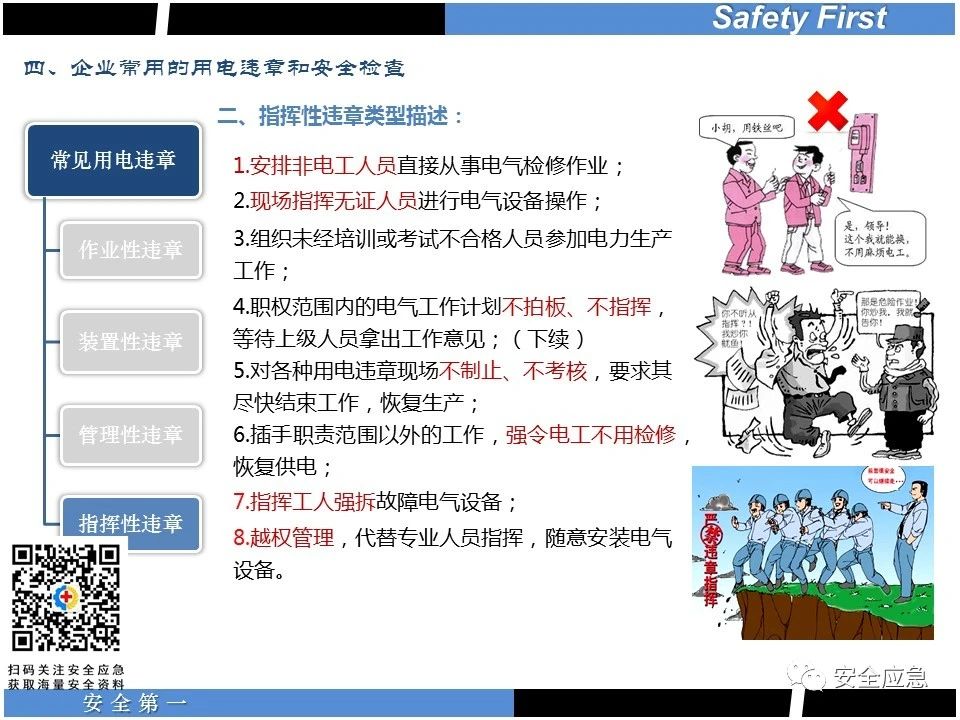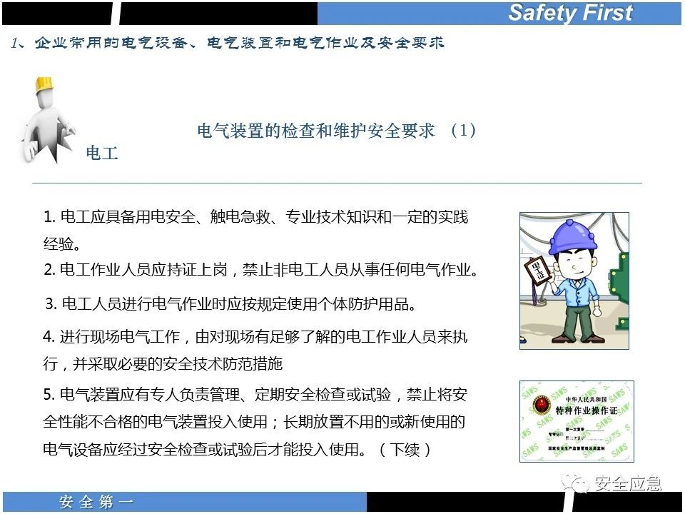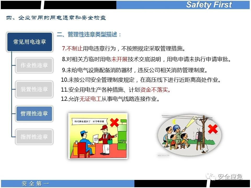 案例73 事故案例73:某35變電站準(zhǔn)備10kV避雷器試驗(yàn)。作業(yè)人員會(huì)同運(yùn)行人員準(zhǔn)備查看設(shè)備實(shí)際情況,拆卸10kV開關(guān)柜背板螺栓,打開了柜門上的電磁鎖,并打開了后柜門后,作業(yè)人員探頭進(jìn)入開關(guān)柜內(nèi)時(shí),對(duì)開關(guān)柜放電。 其它案例見17、18、19、20、21、22、23、50、52。 (27)多組人員組織混亂 案例74 事故案例74:某單位開展500kV線路停電檢修和地線融冰試驗(yàn)。1名工作人員不聽他人勸阻,登塔拆除引流線。隨后開展地線融冰試驗(yàn),該工作人員觸電死亡。 其它案例見45、46、47、48。 (28)交底不認(rèn)真 案例75 事故案例75:某工作負(fù)責(zé)人帶領(lǐng)兩名工作人員準(zhǔn)備在10kV線路裝設(shè)接地線。工作前,工作負(fù)責(zé)人沒有進(jìn)行班前(后)會(huì),沒有分配工作任務(wù),也沒有交代安全注意事項(xiàng),另外兩人也沒有主動(dòng)詢問(wèn),相互提醒,導(dǎo)致工作負(fù)責(zé)人無(wú)監(jiān)護(hù)誤登運(yùn)行線路,造成觸電。 其它案例見32。 (29)監(jiān)護(hù)不到位 l 單人工作無(wú)監(jiān)護(hù) 事故案例:36。 l 監(jiān)護(hù)人參與工作 事故案例:11。 l 監(jiān)護(hù)不認(rèn)真,或默許違章行為 事故案例:67。 (30)人員、工作安排不恰當(dāng) 案例76 事故案例76:某供電所安排不具備單獨(dú)工作資格和能力的新入廠員工上桿進(jìn)行配變?cè)O(shè)備搶修工作,由于安全距離不夠,員工經(jīng)驗(yàn)不足,監(jiān)護(hù)不到位,導(dǎo)致觸電。 案例77 事故案例77:某高壓試驗(yàn)班開展定檢預(yù)試作業(yè)。工作負(fù)責(zé)人與工作人員在抄錄放電計(jì)數(shù)器銘牌,另一名剛參加工作不久的工作人員拿著自制試驗(yàn)線插入移動(dòng)電源盤插座內(nèi),然后,用左、右手分別拿住兩個(gè)鱷魚夾準(zhǔn)備對(duì)放電器搭接做試驗(yàn),左、右手習(xí)慣性的分別握住了兩個(gè)鱷魚夾的導(dǎo)體部分,此時(shí)電流通過(guò)人體,漏電保護(hù)器沒有動(dòng)作,觸電死亡。 (31)單人作業(yè) l 野外單人巡線、勘察 案例78 事故案例78:某單位開展線路巡視時(shí),單人作業(yè),在被告知“巡視完N58塔后切勿過(guò)江,要沿原路返回”的情況下,仍然獨(dú)自一人違規(guī)游泳過(guò)江,溺水身亡。 案例79 事故案例79:某單位野外勘察時(shí),某工作人員在未告知工作負(fù)責(zé)人的情況下,獨(dú)自一人返回車輛所在地,途中墜落懸崖暈倒,受輕傷并失蹤12小時(shí)。 附件:最全面的電氣安全培訓(xùn),實(shí)用!