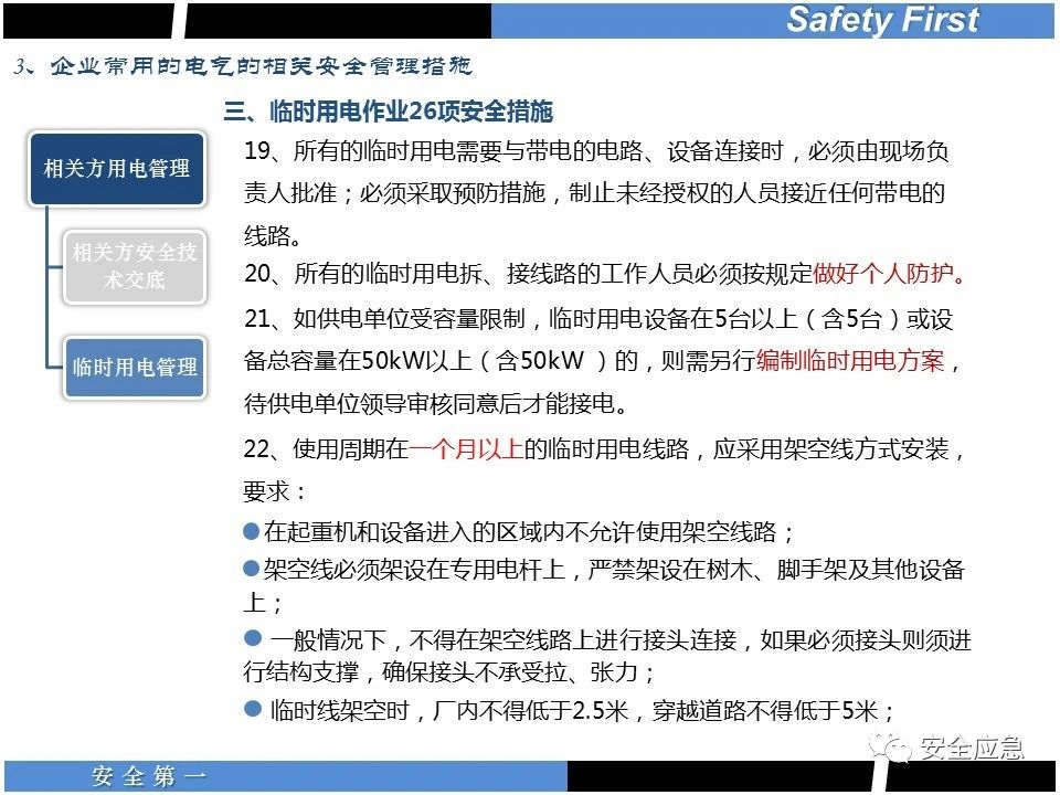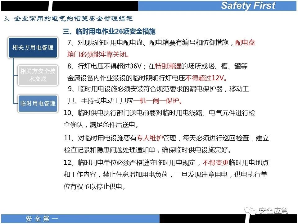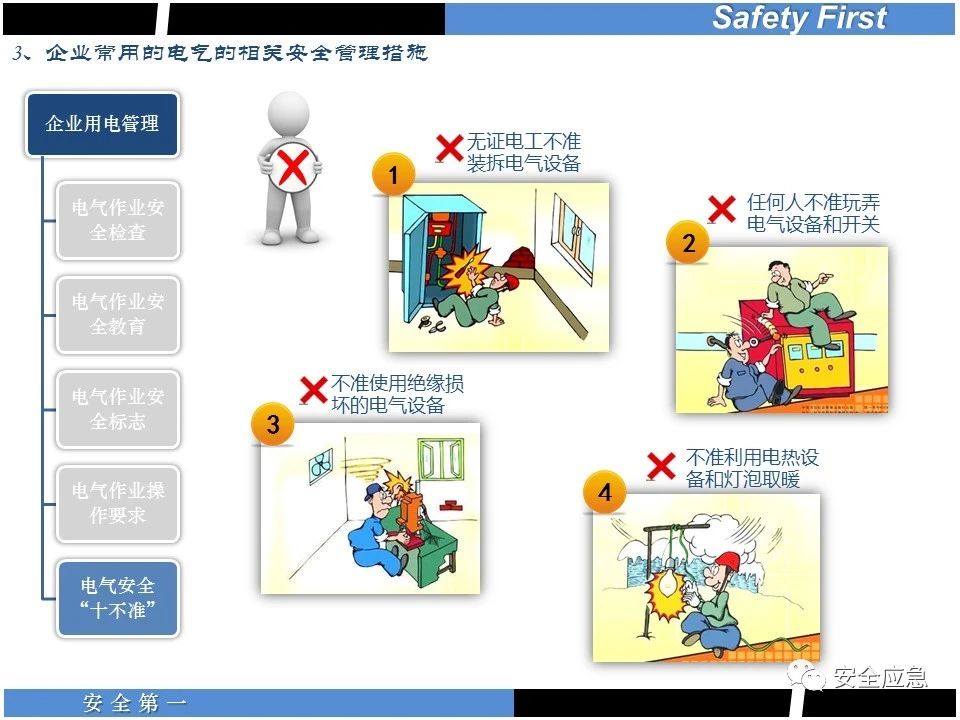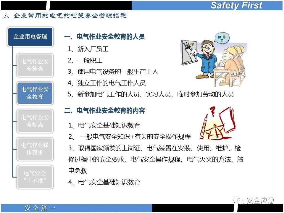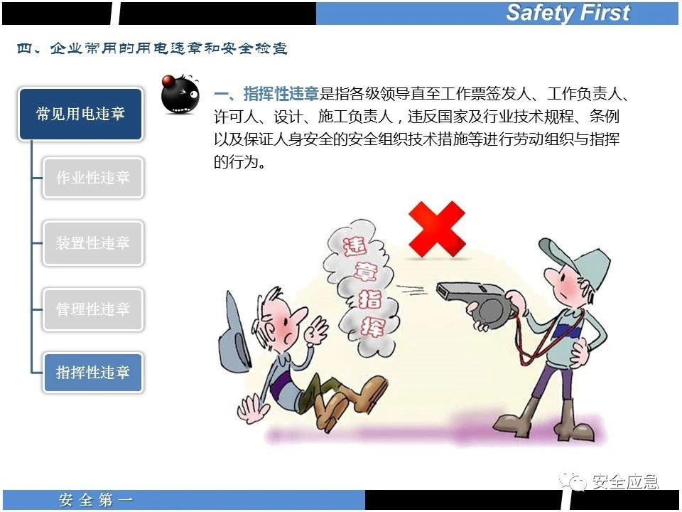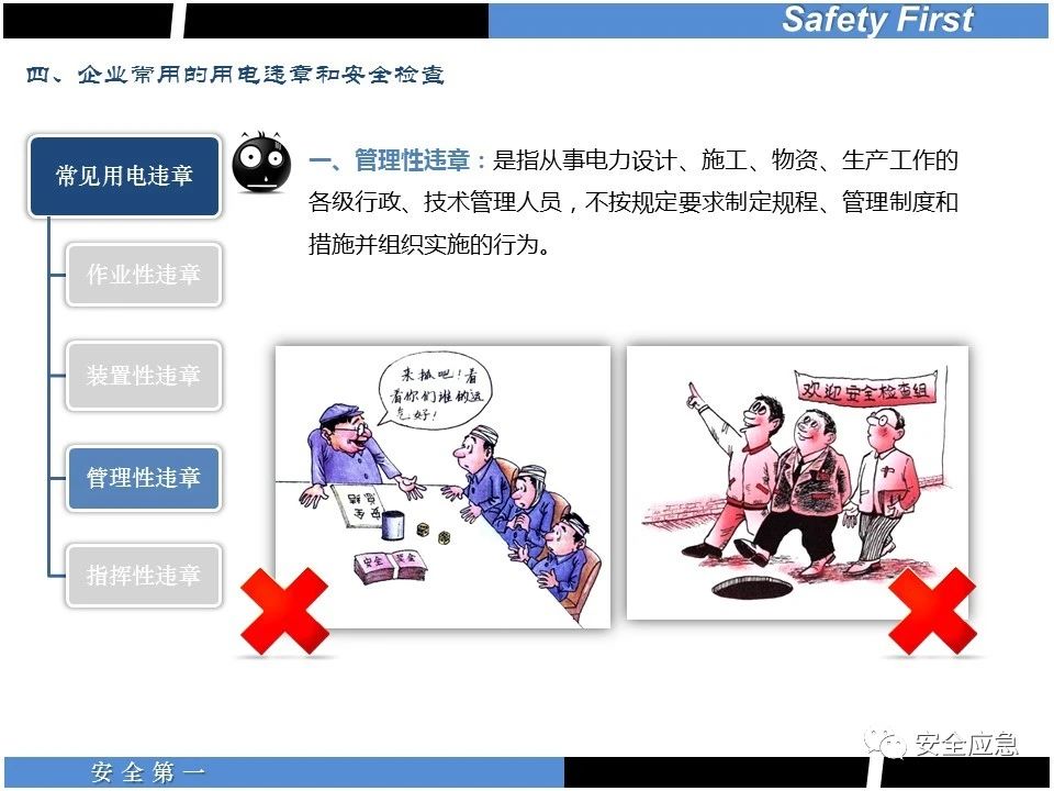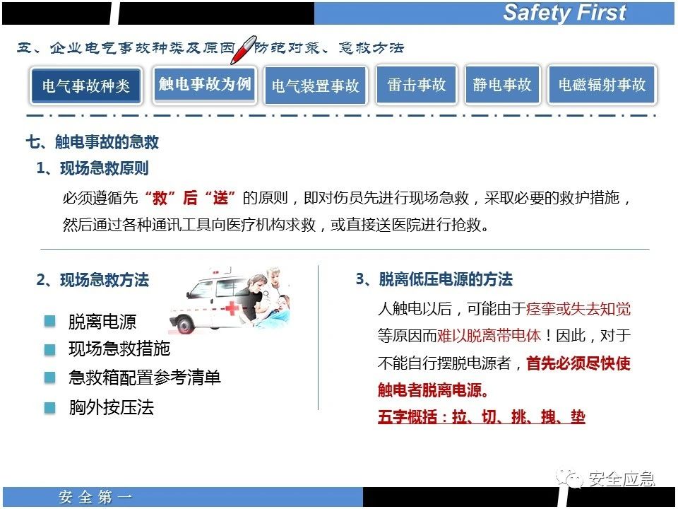 案例73 事故案例73:某35變電站準(zhǔn)備10kV避雷器試驗(yàn)。作業(yè)人員會(huì)同運(yùn)行人員準(zhǔn)備查看設(shè)備實(shí)際情況,拆卸10kV開關(guān)柜背板螺栓,打開了柜門上的電磁鎖,并打開了后柜門后,作業(yè)人員探頭進(jìn)入開關(guān)柜內(nèi)時(shí),對(duì)開關(guān)柜放電。 其它案例見17、18、19、20、21、22、23、50、52。 (27)多組人員組織混亂 案例74 事故案例74:某單位開展500kV線路停電檢修和地線融冰試驗(yàn)。1名工作人員不聽他人勸阻,登塔拆除引流線。隨后開展地線融冰試驗(yàn),該工作人員觸電死亡。 其它案例見45、46、47、48。 (28)交底不認(rèn)真 案例75 事故案例75:某工作負(fù)責(zé)人帶領(lǐng)兩名工作人員準(zhǔn)備在10kV線路裝設(shè)接地線。工作前,工作負(fù)責(zé)人沒有進(jìn)行班前(后)會(huì),沒有分配工作任務(wù),也沒有交代安全注意事項(xiàng),另外兩人也沒有主動(dòng)詢問(wèn),相互提醒,導(dǎo)致工作負(fù)責(zé)人無(wú)監(jiān)護(hù)誤登運(yùn)行線路,造成觸電。 其它案例見32。 (29)監(jiān)護(hù)不到位 l 單人工作無(wú)監(jiān)護(hù) 事故案例:36。 l 監(jiān)護(hù)人參與工作 事故案例:11。 l 監(jiān)護(hù)不認(rèn)真,或默許違章行為 事故案例:67。 (30)人員、工作安排不恰當(dāng) 案例76 事故案例76:某供電所安排不具備單獨(dú)工作資格和能力的新入廠員工上桿進(jìn)行配變?cè)O(shè)備搶修工作,由于安全距離不夠,員工經(jīng)驗(yàn)不足,監(jiān)護(hù)不到位,導(dǎo)致觸電。 案例77 事故案例77:某高壓試驗(yàn)班開展定檢預(yù)試作業(yè)。工作負(fù)責(zé)人與工作人員在抄錄放電計(jì)數(shù)器銘牌,另一名剛參加工作不久的工作人員拿著自制試驗(yàn)線插入移動(dòng)電源盤插座內(nèi),然后,用左、右手分別拿住兩個(gè)鱷魚夾準(zhǔn)備對(duì)放電器搭接做試驗(yàn),左、右手習(xí)慣性的分別握住了兩個(gè)鱷魚夾的導(dǎo)體部分,此時(shí)電流通過(guò)人體,漏電保護(hù)器沒有動(dòng)作,觸電死亡。 (31)單人作業(yè) l 野外單人巡線、勘察 案例78 事故案例78:某單位開展線路巡視時(shí),單人作業(yè),在被告知“巡視完N58塔后切勿過(guò)江,要沿原路返回”的情況下,仍然獨(dú)自一人違規(guī)游泳過(guò)江,溺水身亡。 案例79 事故案例79:某單位野外勘察時(shí),某工作人員在未告知工作負(fù)責(zé)人的情況下,獨(dú)自一人返回車輛所在地,途中墜落懸崖暈倒,受輕傷并失蹤12小時(shí)。 附件:最全面的電氣安全培訓(xùn),實(shí)用!