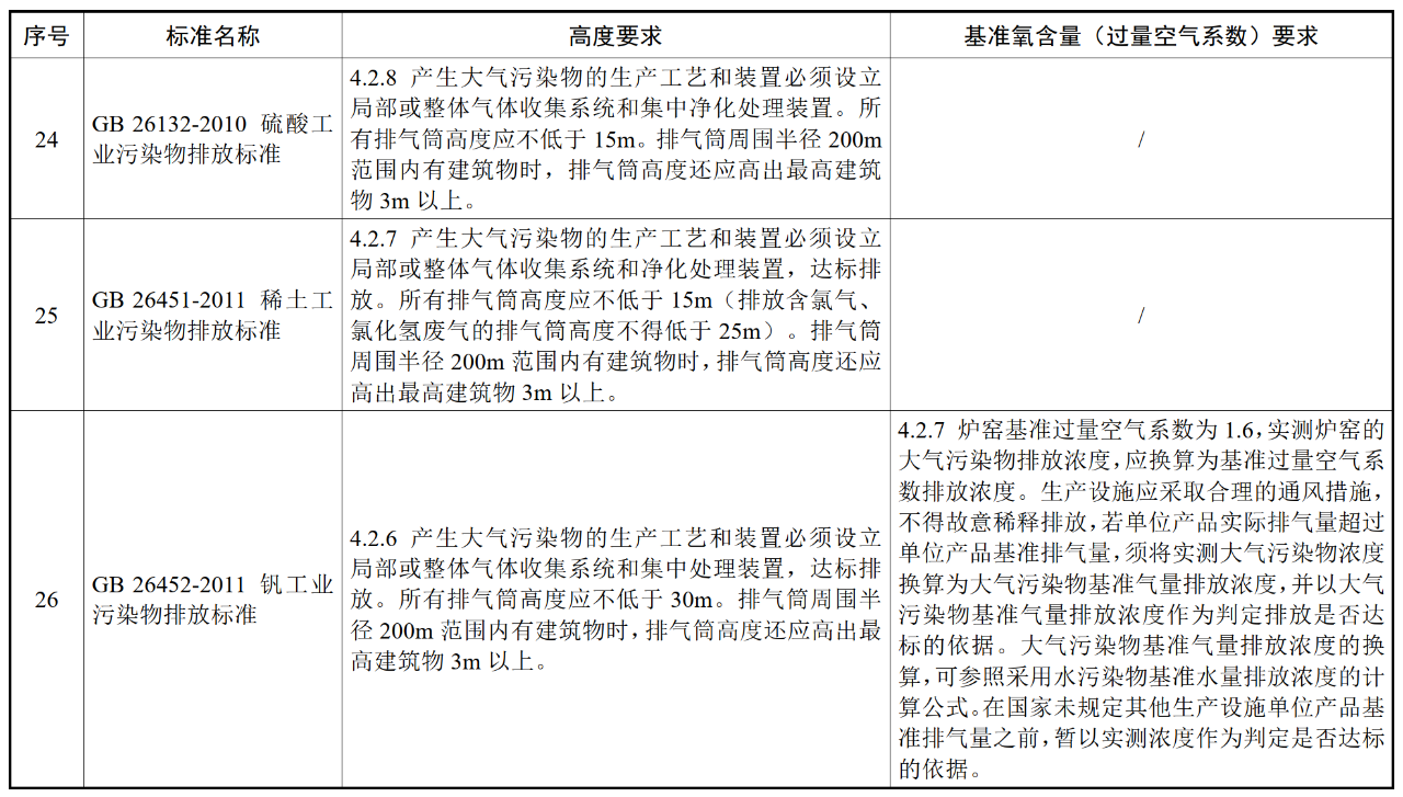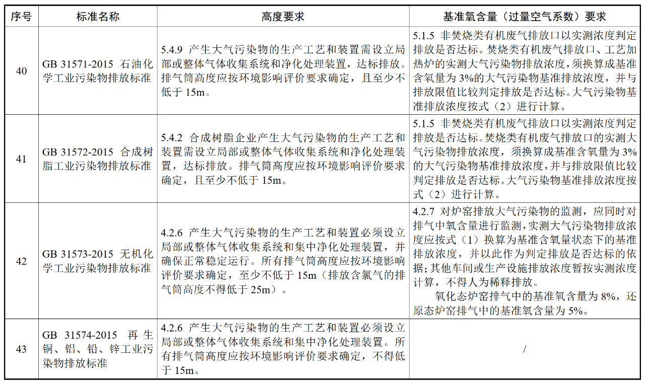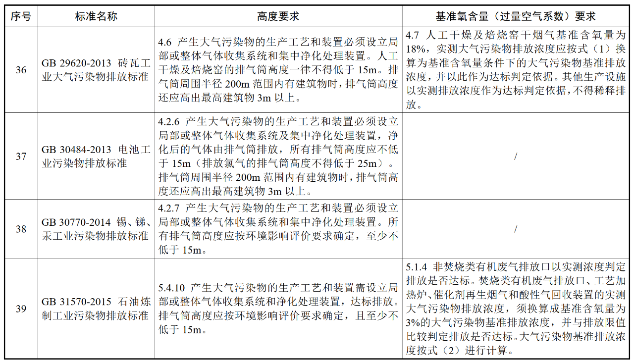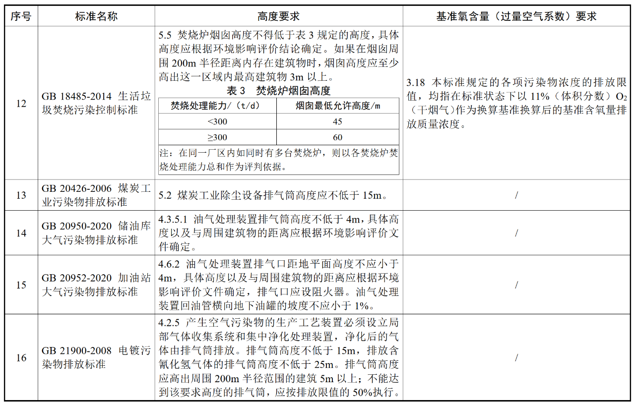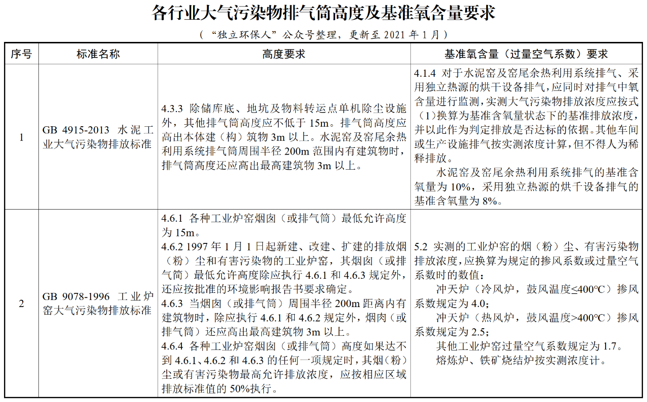 一段時間以前,本站分享了關于廢氣各行業(yè)排氣筒高度要求(點擊下劃線文字進入原文)和RTO裝置VOCs廢氣排口基準氧含量折算問題考慮等文章,下面本站分享各行業(yè)大氣污染物排氣筒高度及基準氧含量要求,如下: