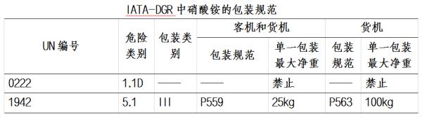 UN編號1942的硝酸銨在空運時,對照IATA-DGR技術(shù)規(guī)定,可選擇客貨機和純貨機兩種方式。當(dāng)用客貨機運輸時,不允許單一包