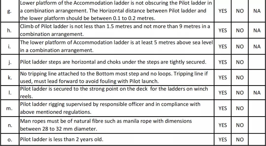 ·所有引航梯的使用年限必須小于2 年。引航員/訪問(wèn)港口的人員,可能會(huì)要求查看引航梯建造證書。