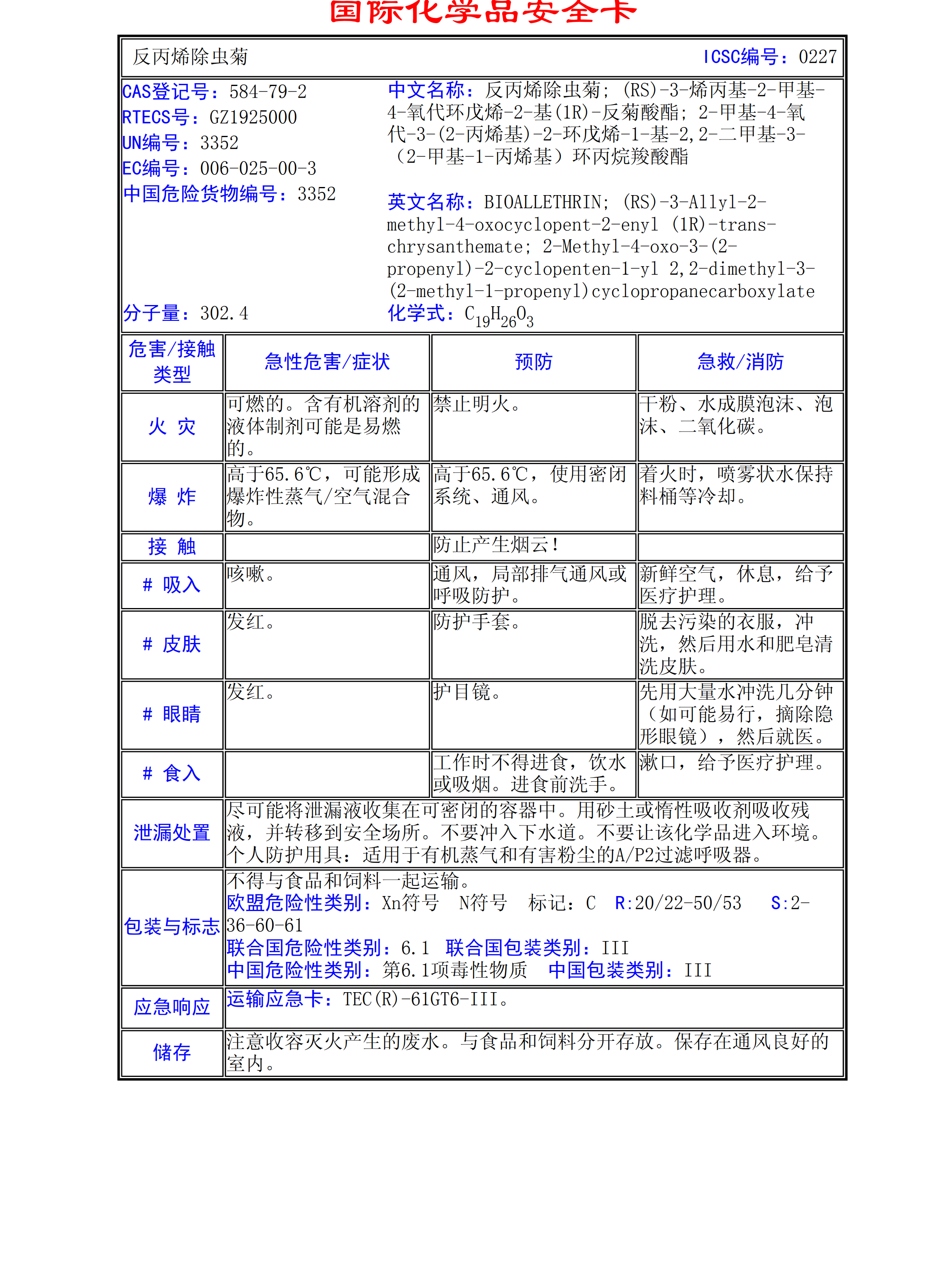 右旋反丙烯除蟲菊MSDS