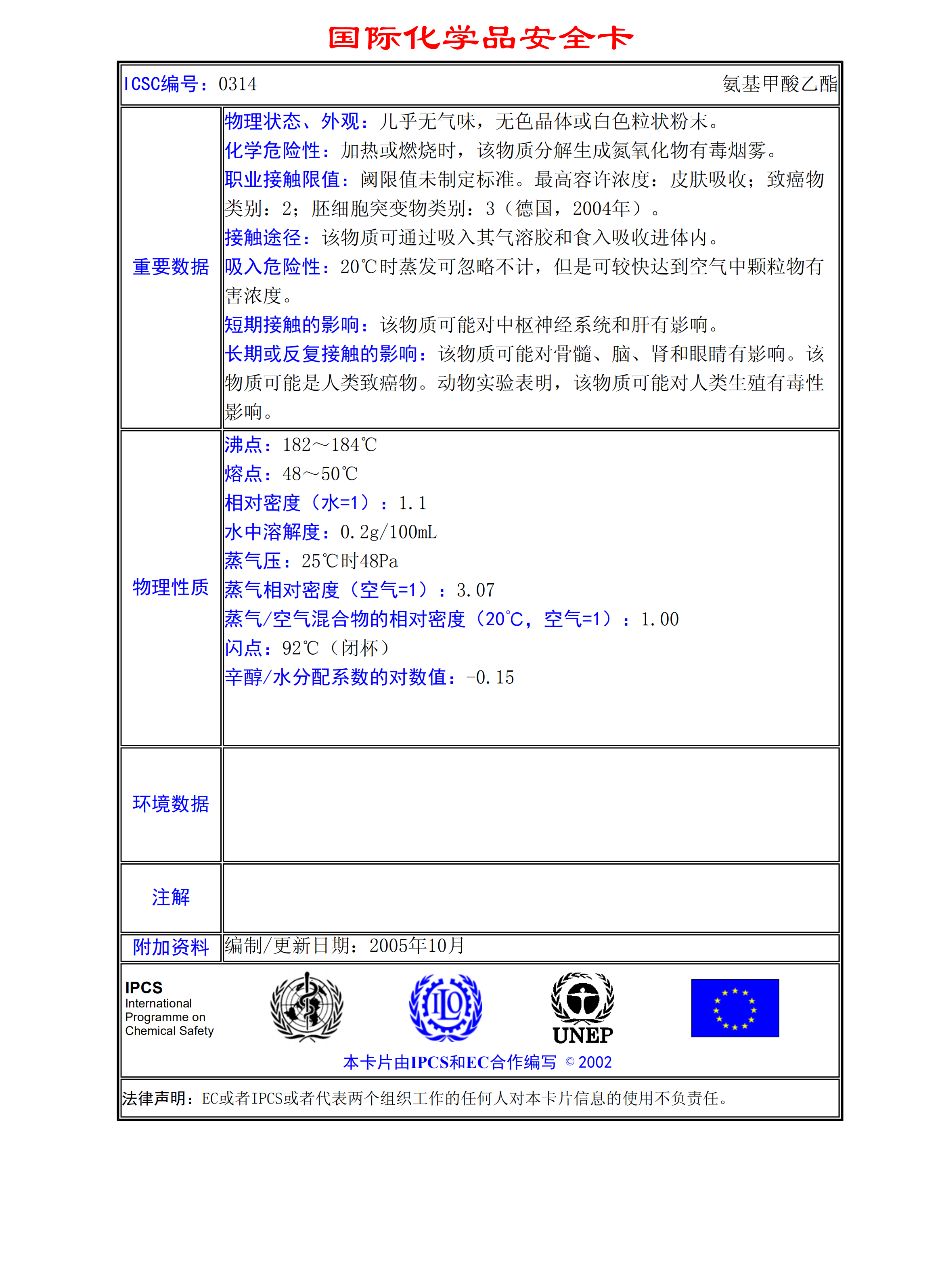 氨基甲酸乙酯MSDS