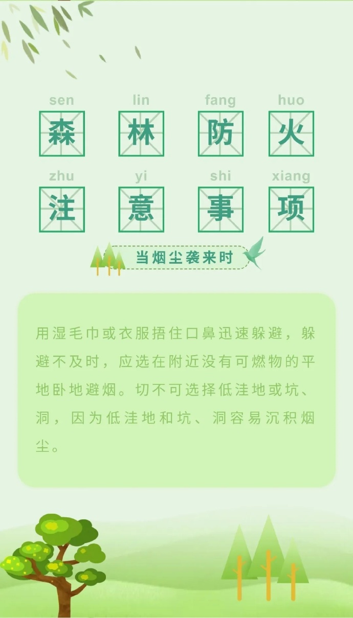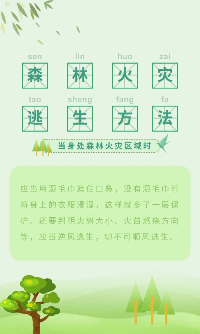 步入三月份以來(lái),全國(guó)各地氣溫回升,物種植被干燥,火險(xiǎn)等級(jí)逐步升高,給森林防火滅火帶來(lái)嚴(yán)峻考驗(yàn)。那么,普通群眾遇到森林火災(zāi)時(shí),該如何最大限度的減小森林火災(zāi)對(duì)自身的危害呢?這些森林火災(zāi)基本逃生方法,一定要記住哦!(甘肅省森林消防總隊(duì)平?jīng)鲋ш?duì)駐黃陵分隊(duì):倪騰飛)