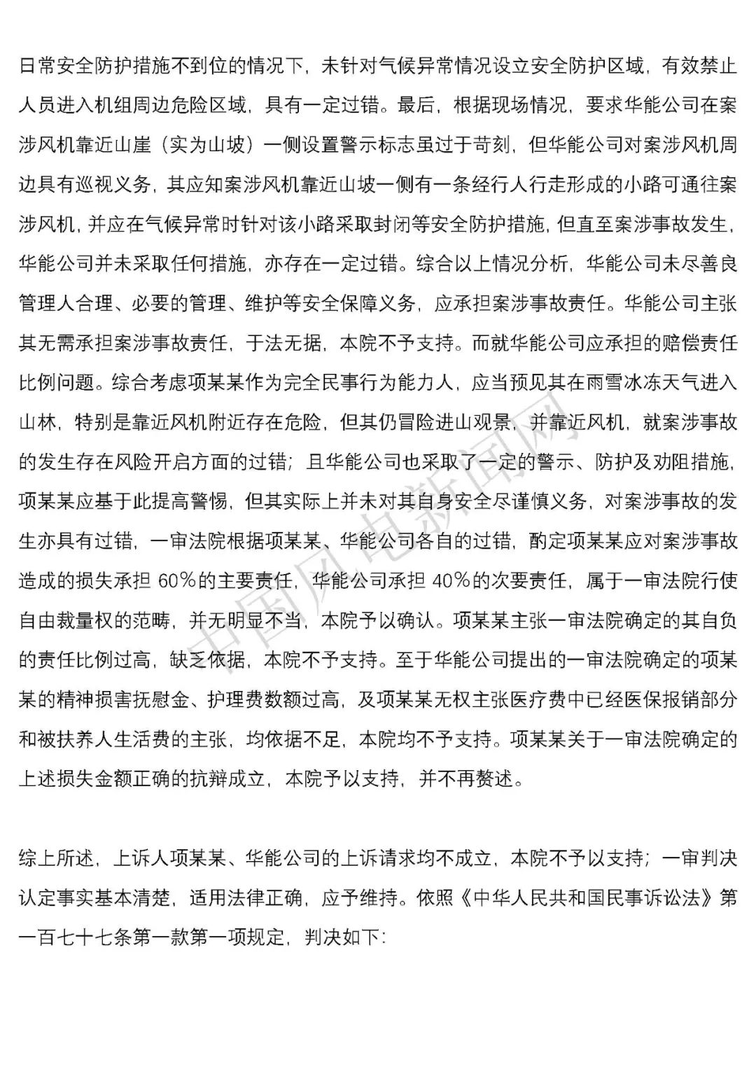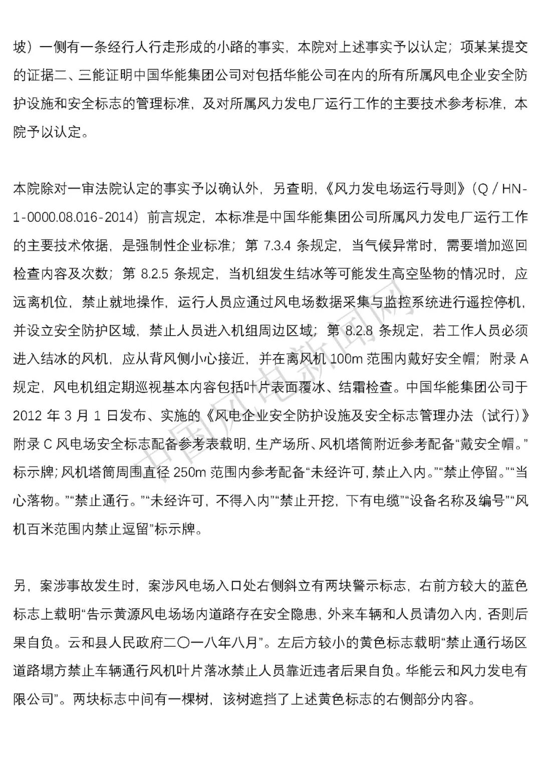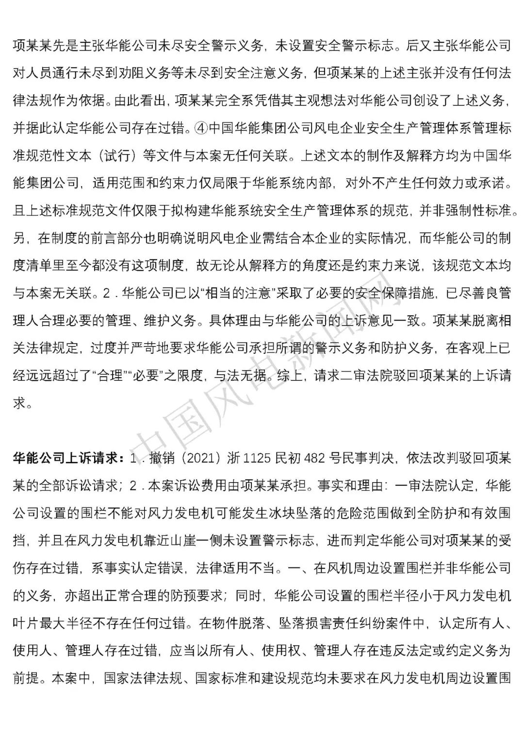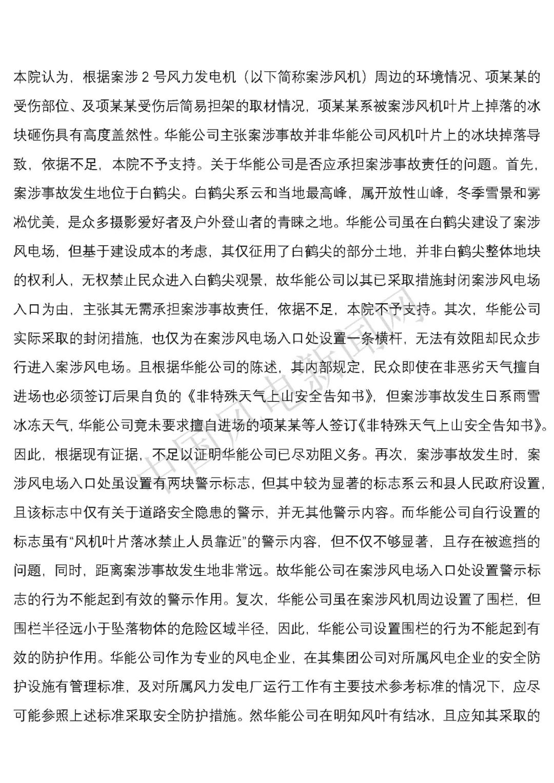 華能浙江某風電場葉片結冰冰塊掉落砸傷路人案宣判