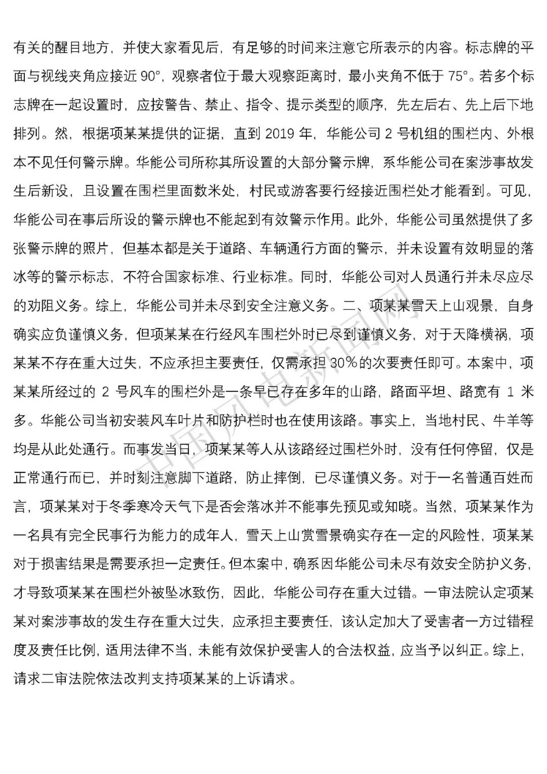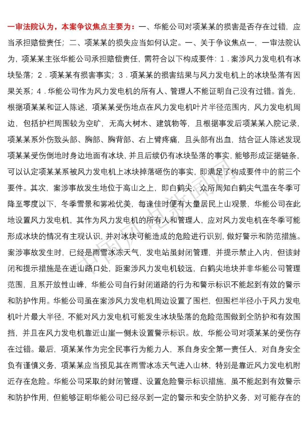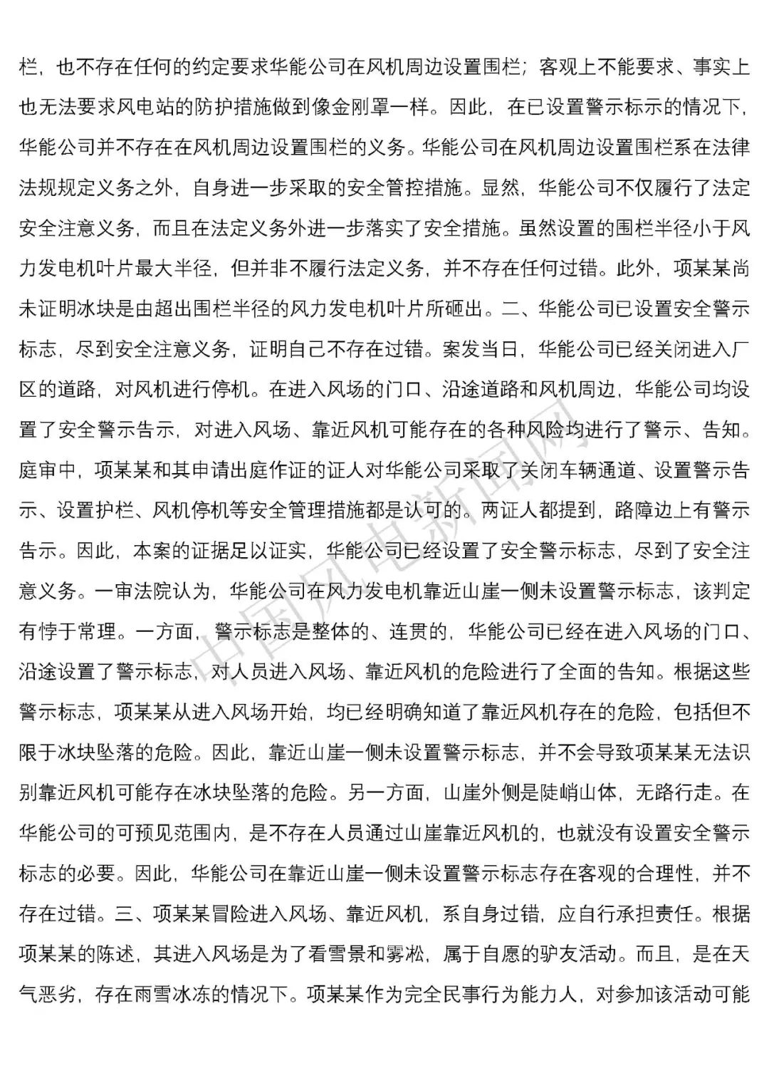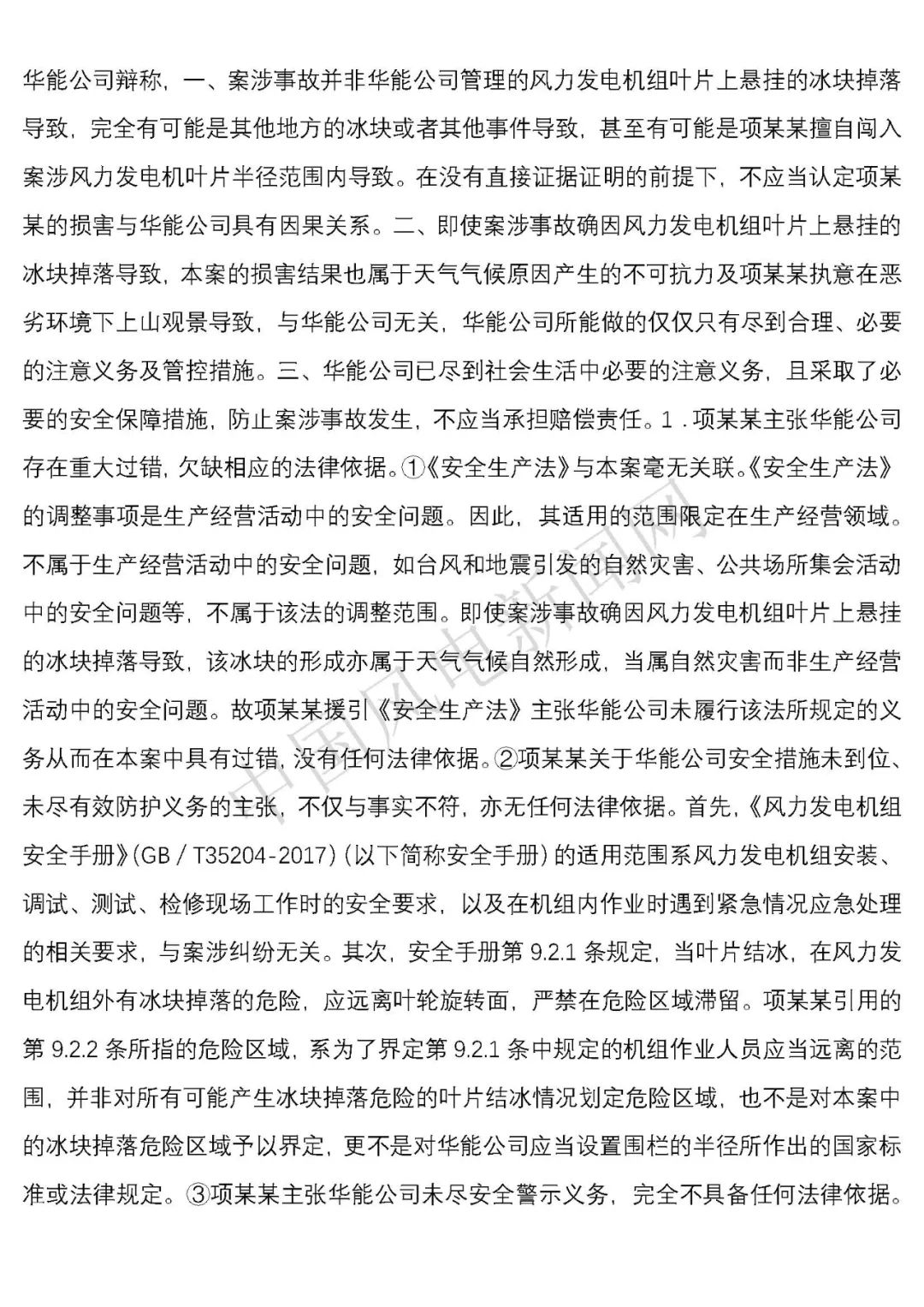 華能浙江某風電場葉片結冰冰塊掉落砸傷路人案宣判