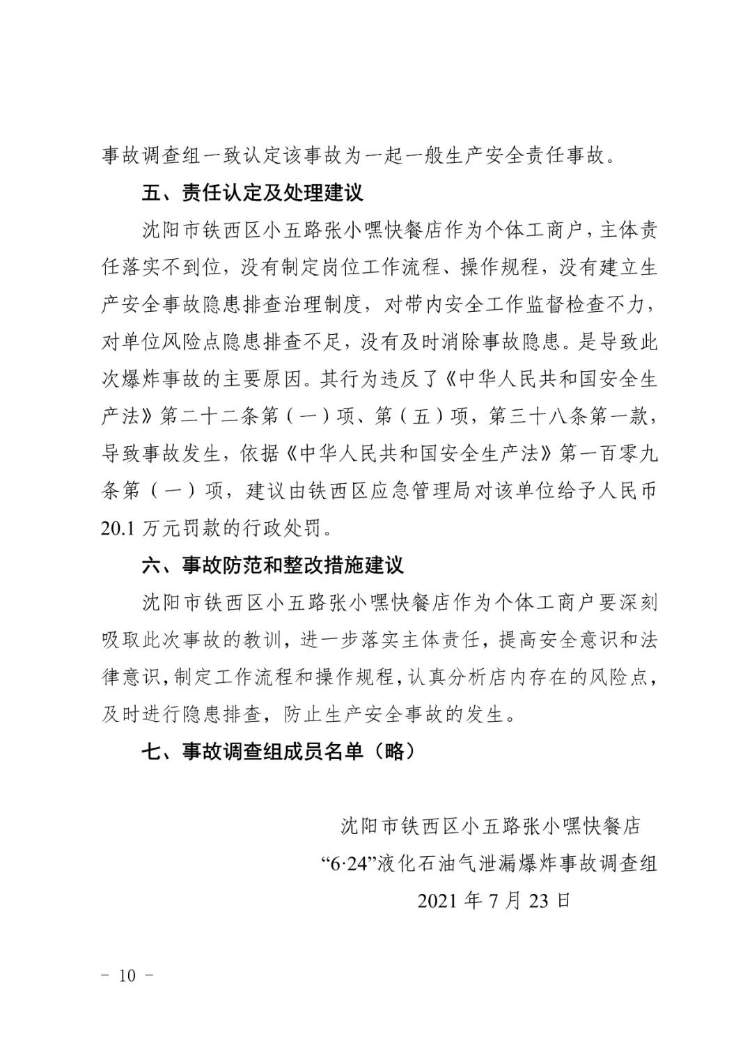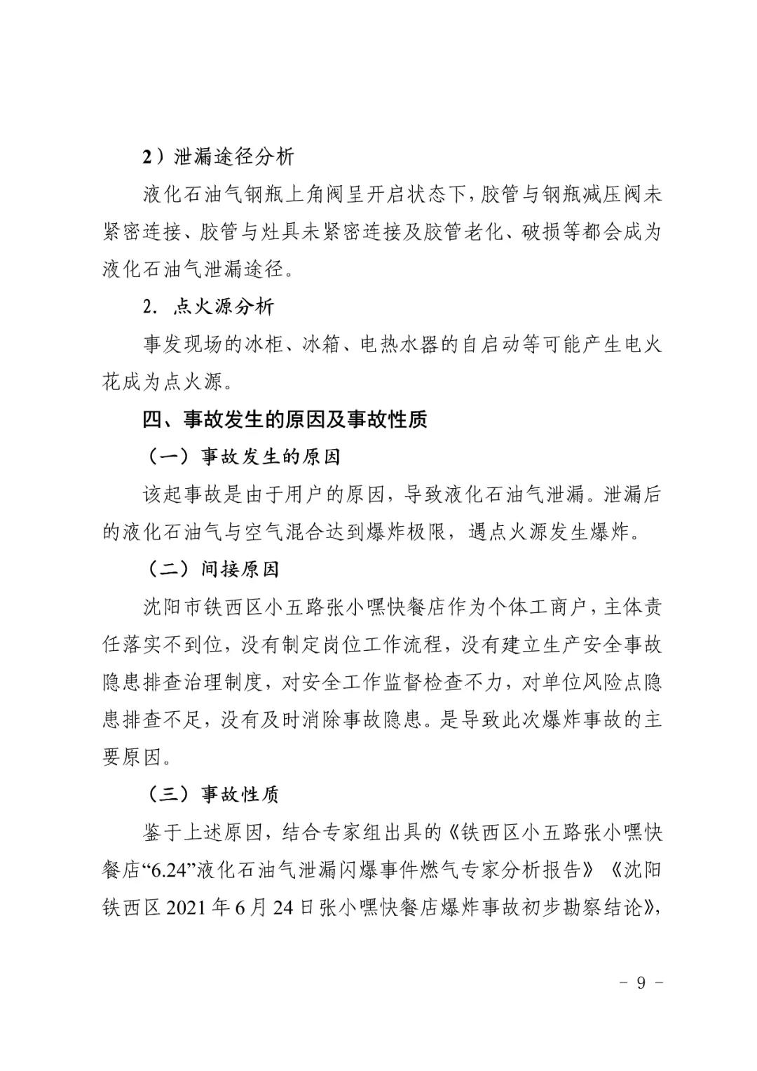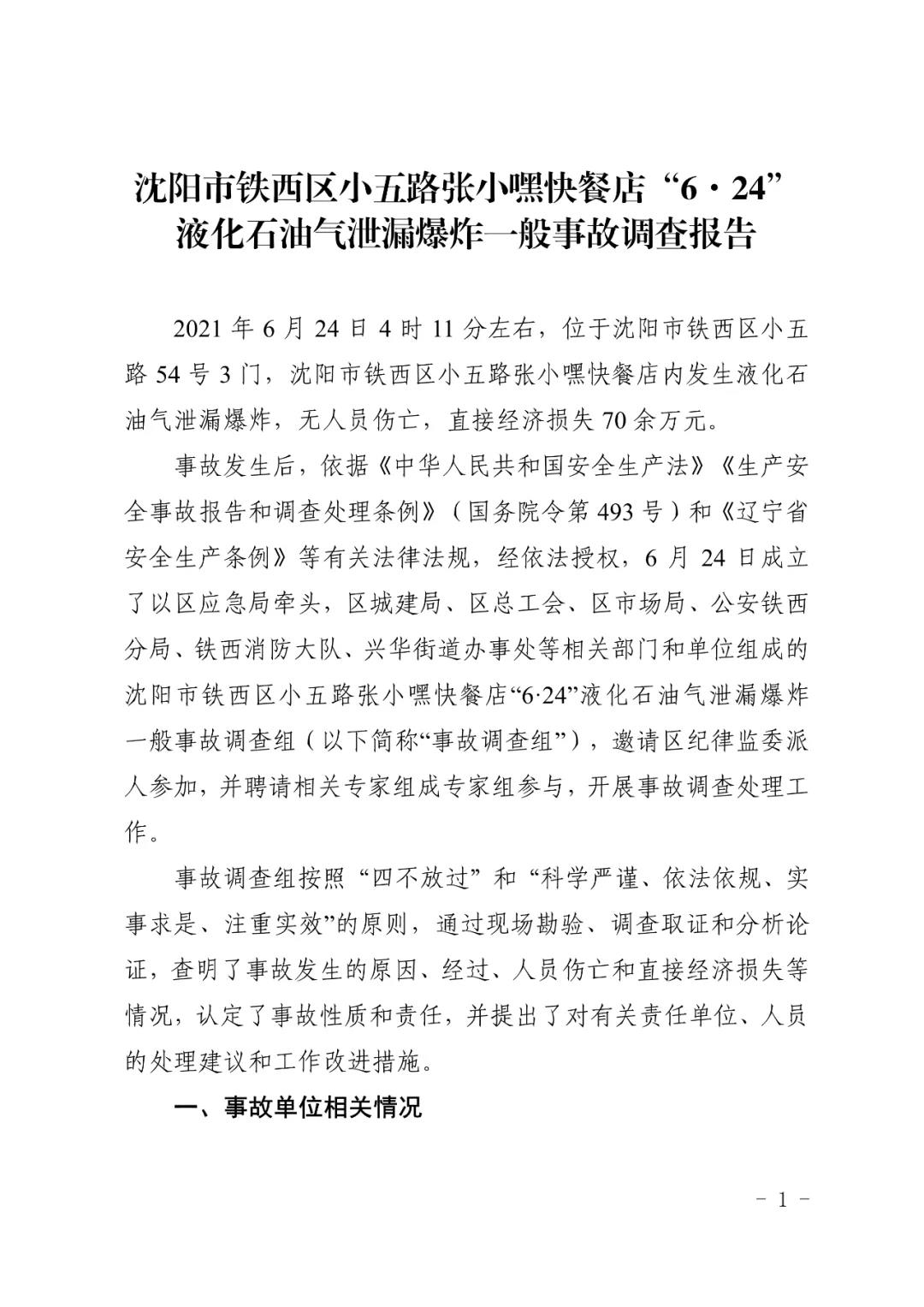 2021 年 6 月 24 日 4 時(shí) 11 分左右,位于沈陽(yáng)市鐵西區(qū)小五路 54 號(hào) 3 門(mén),沈陽(yáng)市鐵西區(qū)小五路張小嘿快餐店內(nèi)發(fā)生液化石油氣泄漏爆炸,無(wú)人員傷亡,直接經(jīng)濟(jì)損失 70 余萬(wàn)元。