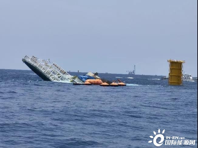 7月26日,中廣核惠州風(fēng)電項(xiàng)目“升平001”號(hào)作業(yè)船施工平臺(tái)發(fā)生傾斜事故后,搜救行動(dòng)進(jìn)入第二天,仍有4人失聯(lián)!據(jù)了解,"升平001"施工平臺(tái)露出水面部分在緩慢減小,有趨向沉沒(méi)的跡象,平臺(tái)上面的鐵架已倒入水下。