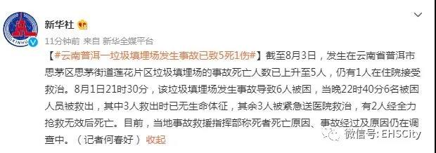 【#云南普洱一垃圾填埋場發(fā)生事故已致5死1傷#】截至8月3日,發(fā)生在云南省普洱市思茅區(qū)思茅街道蓮花片區(qū)垃圾填埋場的事故死亡人數(shù)已上升至5人,仍有1人在住院接受救治。8月1日21時30分,該垃圾填埋場發(fā)生事故導致6人被困,當晚22時40分6名被困人員被救出,其中3人救出時已無生命體征,其余3人被緊急送醫(yī)院救治,有2人經(jīng)全力搶救無效后死亡。目前,當?shù)厥鹿示仍笓]部稱死者死亡原因、事故經(jīng)過及原因仍在調(diào)查中。(記者何春好)極目新聞記者梳理發(fā)現(xiàn),普洱市中心城區(qū)生活垃圾焚燒發(fā)電廠建設項目,為思茅區(qū)2019年23項重點工作之一,于2019年啟動建設,并優(yōu)先完成填埋區(qū)建設。2020年,普洱市相關領導曾前往思茅區(qū),實地調(diào)研市中心城區(qū)生活垃圾焚燒發(fā)電廠項目推進工作。公開資料顯示,2020年3月,配套填埋場正式投入使用,填埋場類型為填埋生活垃圾的衛(wèi)生填埋場,庫容為30.1萬立方。