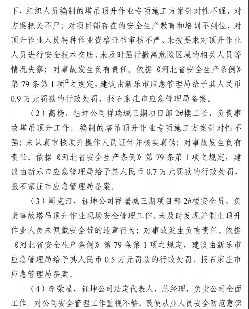 河北石家莊新樂市祥瑞城建筑工地在塔吊頂升作業(yè)事故調(diào)查報告