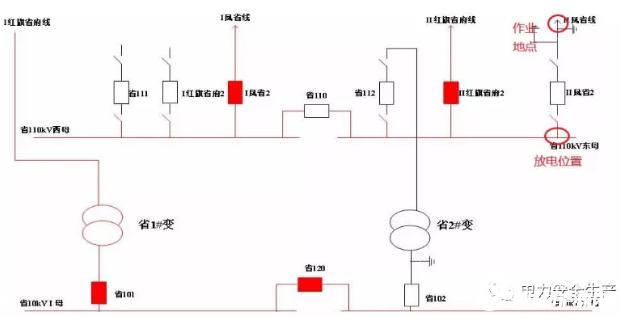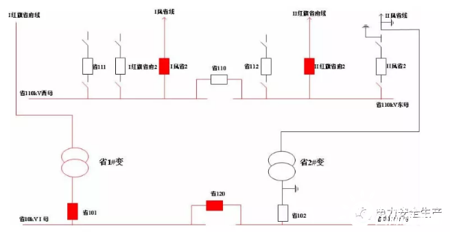 事發(fā)項(xiàng)目為某公司110千伏某變電站110千伏配電裝置改造,改造內(nèi)容為更換110千伏室內(nèi)敞開式手車斷路器,施工中標(biāo)單位為某集團(tuán)有限公司電力安裝分公司(省管產(chǎn)業(yè)單位,簡稱“安裝分公司”)。為不影響重要用戶供電,改造期間變電站采用Ⅰ紅旗省府線直接串帶省1#變、Ⅱ鳳省線直接串帶省2#變的過渡方式運(yùn)行。6月12日改造完成后,110千伏母線恢復(fù)運(yùn)行。(運(yùn)行方式見圖1、圖2)