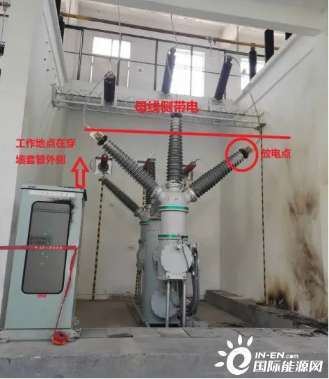 此時(shí),110千伏II鳳省2開關(guān)處于冷備用狀態(tài),II鳳省2東刀閘母線側(cè)帶電。6月17日19時(shí)13分,安裝分公司工作負(fù)責(zé)人孫某和變電運(yùn)維正值沈某前往II鳳省2開關(guān)間隔,違規(guī)使用鋼卷尺進(jìn)行測(cè)量工作(非工作票所列作業(yè)內(nèi)容),在鋼卷尺靠近帶電的母線引下線過程中發(fā)生放電,導(dǎo)致孫某觸電死亡,沈某被嚴(yán)重?zé)齻?。(事發(fā)發(fā)生現(xiàn)場見圖3)
