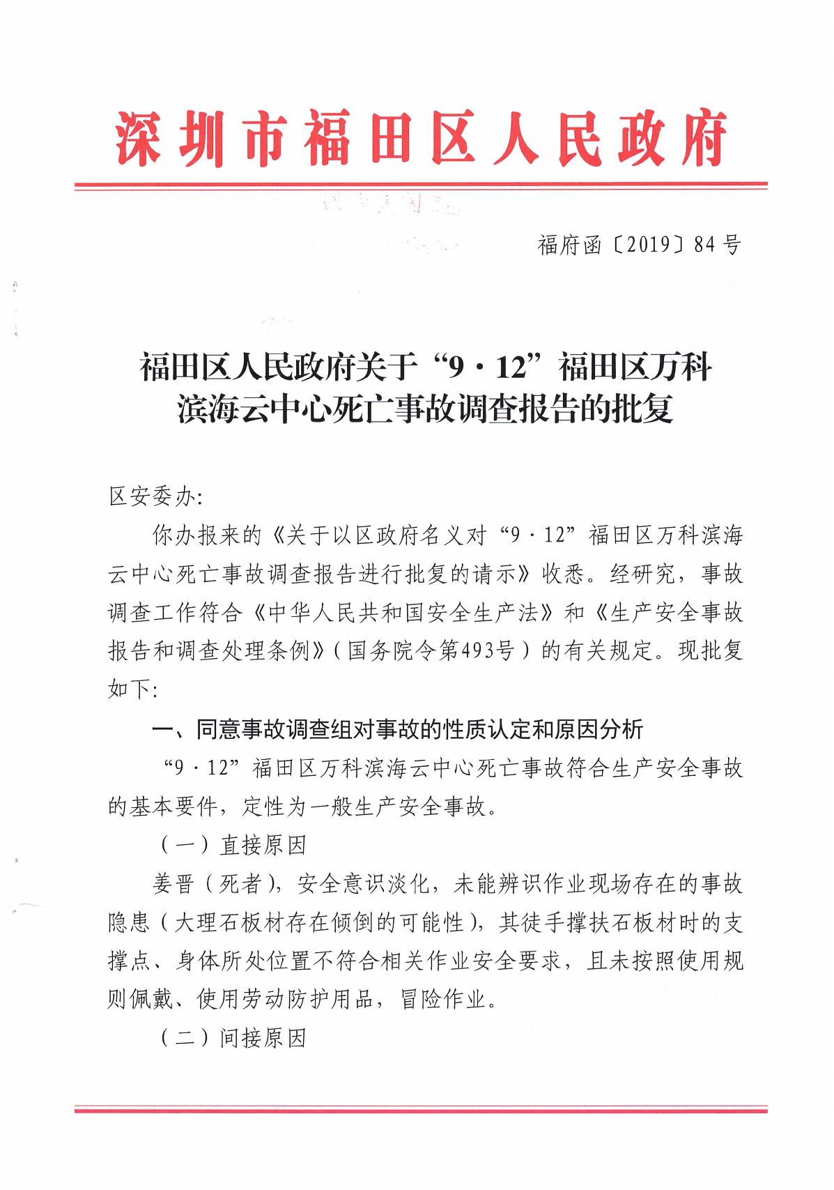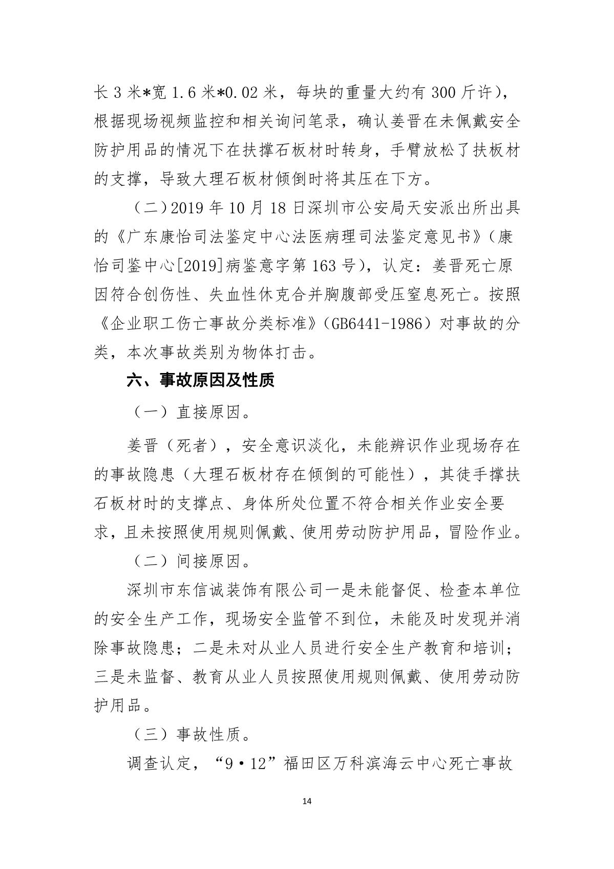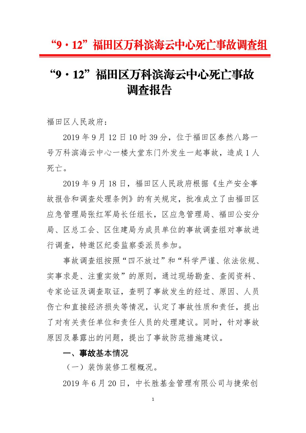 “9.12”福田區(qū)萬(wàn)科濱海云中心死亡事故調(diào)查報(bào)告