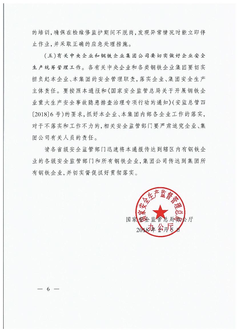 貴州首鋼水城鋼鐵(集團(tuán))有限責(zé)任公司“1?31”煤氣中毒等兩起較大事故的通報(bào)
