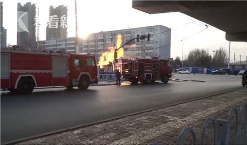 11月26日早上7點(diǎn)20左右,遼寧省沈陽市鐵西區(qū)重工街與沈新路交匯口,由于地下燃?xì)夤艿佬孤?dǎo)致起火,迅速引燃多輛路邊停放的車輛。