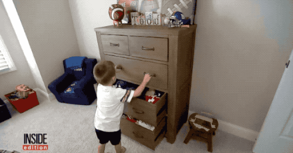 小孩玩耍時(shí)被柜子砸倒