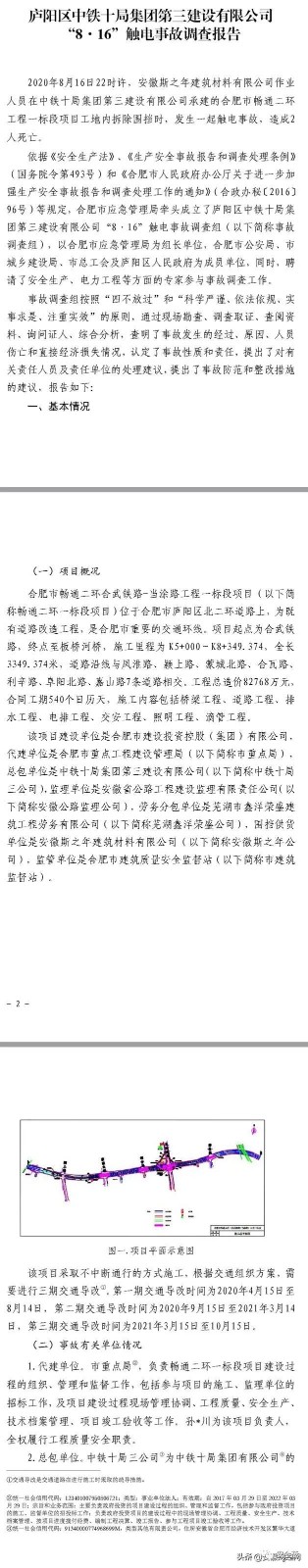 12月2日,合肥應(yīng)急管理局在其官網(wǎng)發(fā)布廬陽區(qū)中鐵十局集團(tuán)第三建設(shè)有限公司 “816”觸電事故調(diào)查報(bào)告。