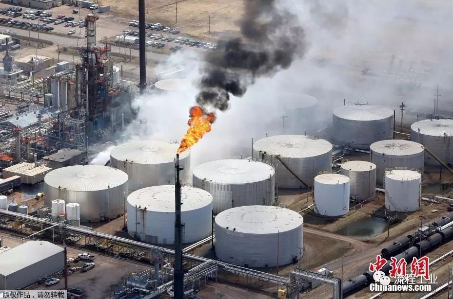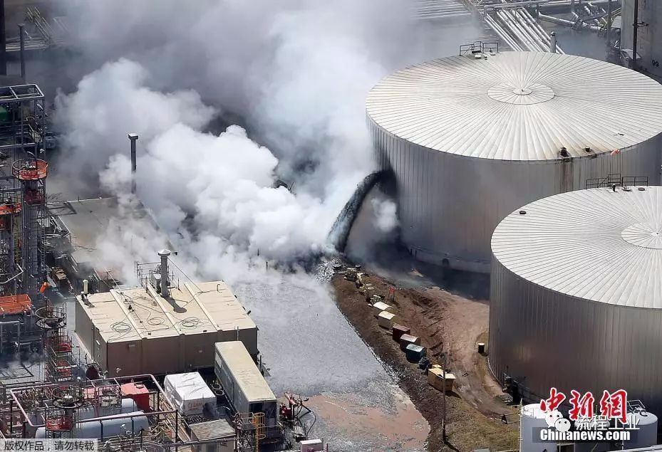煉油廠爆炸現(xiàn)場(chǎng)濃煙滾滾