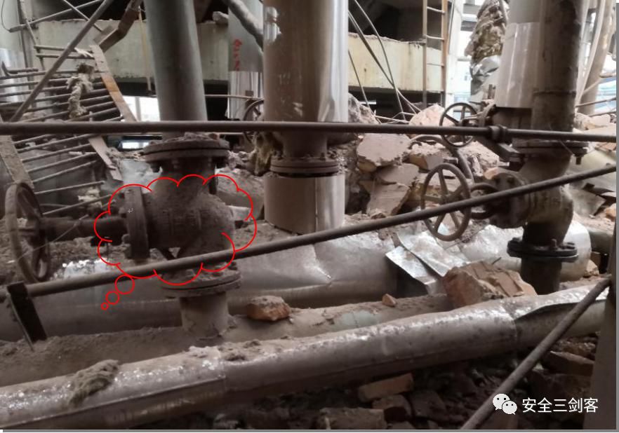 (5)空壓機(jī)小房南側(cè)位置氨水管、濕空氣管斷裂。