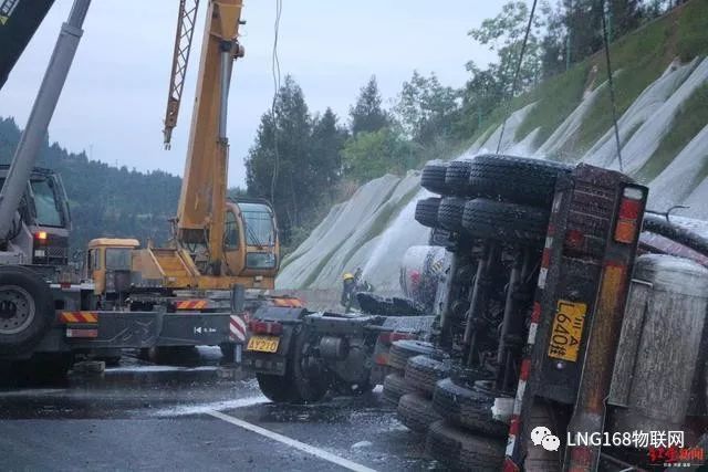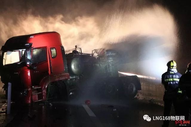 消防救援人員介紹,由于事故車輛為LNG(液化天然氣)動(dòng)力,事故導(dǎo)致LNG氣罐閥門變形泄漏,且LNG儲(chǔ)存罐處于滿載狀態(tài),如發(fā)生爆炸燃燒后果不堪設(shè)想。根據(jù)現(xiàn)場(chǎng)情況,救援人員決定采取放空稀釋的方法進(jìn)行處置。隨后,救援行動(dòng)展開,一是高速交警立即對(duì)該路段進(jìn)行封鎖,實(shí)施現(xiàn)場(chǎng)警戒;二是消防救援人員利用開花水槍、泡沫槍分別對(duì)氣罐泄漏點(diǎn)及周邊進(jìn)行稀釋覆蓋,防止發(fā)生次生災(zāi)害。同時(shí),救援人員調(diào)集大型吊車和裝載車對(duì)事故車輛進(jìn)行起吊拖離。