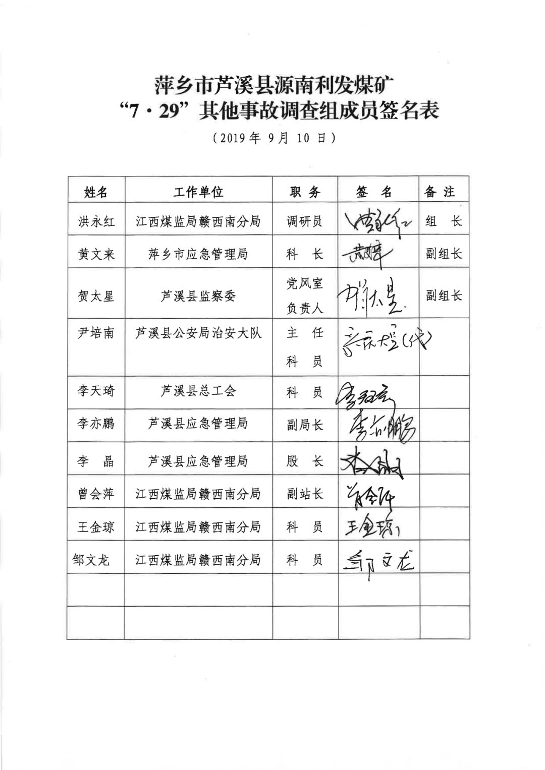 2.利發(fā)煤礦“7.29”其他事故調(diào)查組成員簽名表