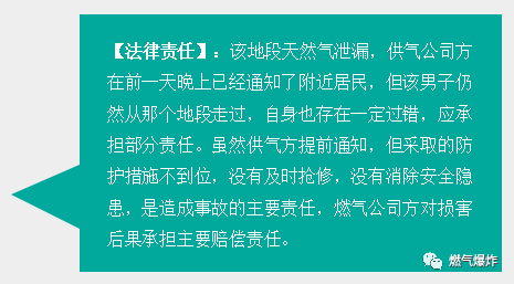 某男在早上散步過程中,地下天然氣爆炸造成死亡。頭一天晚上11點就知道該區(qū)域有天然氣泄漏,燃氣公司已經(jīng)提前通知了附近居民。