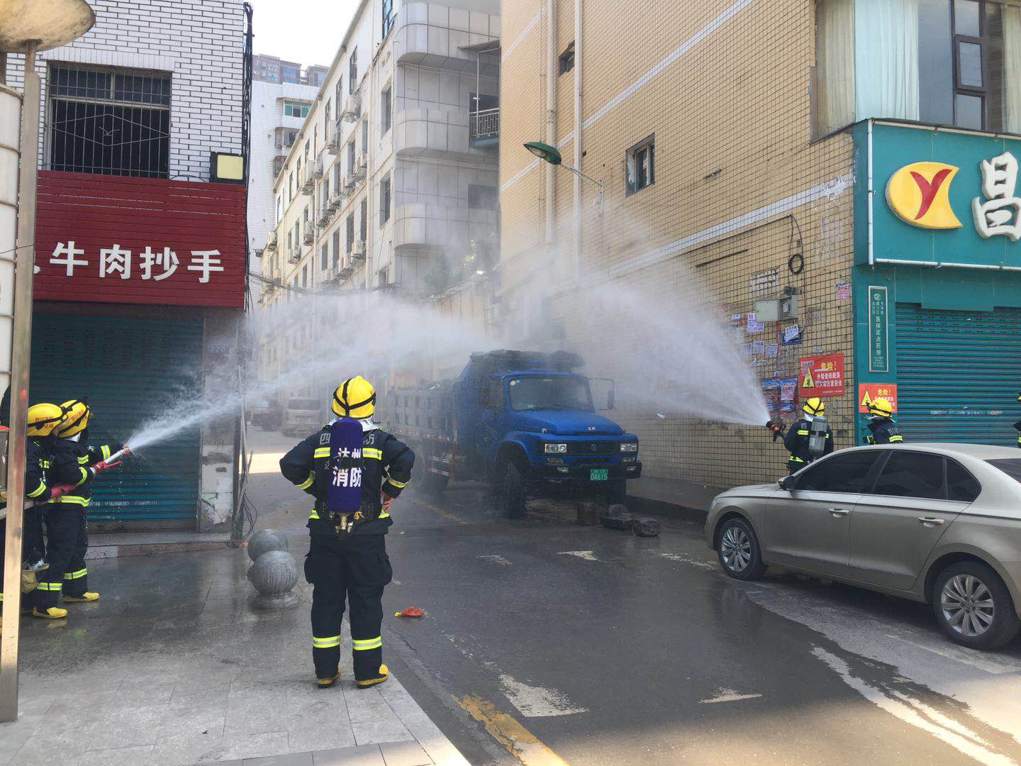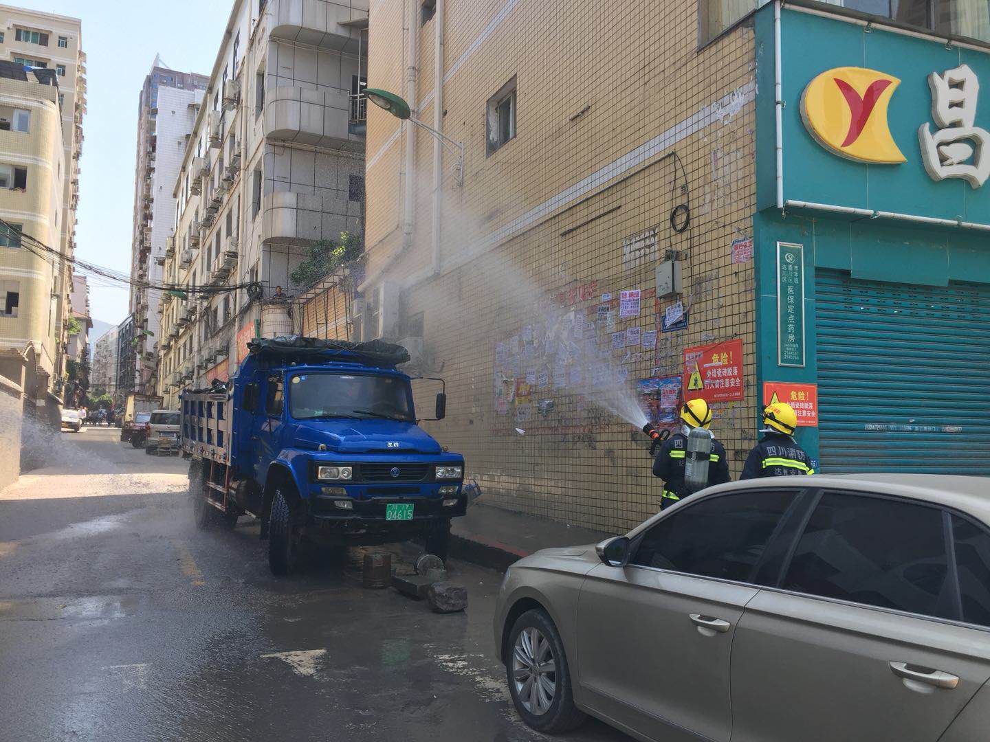 到達(dá)現(xiàn)場(chǎng)后,中隊(duì)官兵對(duì)現(xiàn)場(chǎng)情況經(jīng)過(guò)仔細(xì)勘察發(fā)現(xiàn),因工地施工人員操作不慎,誤將埋在地下的一條天然氣管道挖破,管道發(fā)生破裂導(dǎo)致大量氣體正快速外泄。伴隨著氣體的泄漏,管道破裂處還傳來(lái)了尖銳的氣體泄漏聲,四周的空氣中彌漫著刺鼻的天然氣味。為了防止泄漏的氣體對(duì)周?chē)娜罕娫斐蓚Γ笓]員立即下令警戒事故現(xiàn)場(chǎng),并將無(wú)關(guān)人員快速疏散到安全地帶。并通知天然氣公司趕往現(xiàn)場(chǎng)處置。與此同時(shí),中隊(duì)指導(dǎo)員帶領(lǐng)攻堅(jiān)組成員迅速確定天然氣的泄漏點(diǎn),鋪設(shè)水槍陣地,出兩支水槍對(duì)泄漏點(diǎn)處的可燃?xì)怏w進(jìn)行稀釋,盡最大限度降低可燃?xì)怏w濃度,防止發(fā)生爆炸事故。經(jīng)過(guò)近二十多分鐘的戰(zhàn)斗,該片區(qū)的天然氣閥門(mén)被關(guān)閉,破裂處停止了尖銳的氣體泄漏聲。