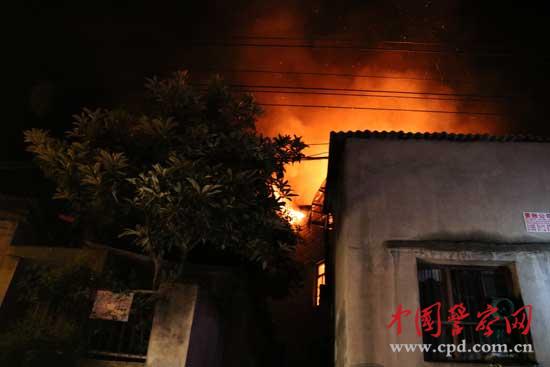 中隊(duì)官兵到達(dá)現(xiàn)場(chǎng)后,只見(jiàn)起火民房火勢(shì)較大,正處于猛烈燃燒階段。消防官兵經(jīng)現(xiàn)場(chǎng)詢問(wèn)知情人和火情偵察得知,起火點(diǎn)是二樓右側(cè)的一間房屋里的煤氣罐,并發(fā)生了一次爆炸,火勢(shì)把二樓4間房房頂全部引燃,二樓房間地面被炸穿,火苗落到一樓室內(nèi)引燃了一樓的一間房屋,屋內(nèi)無(wú)人員被困。