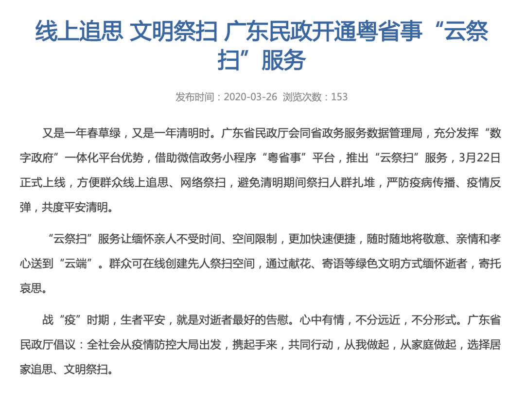 清明將近 3月26日廣東省民政廳發(fā)文倡導(dǎo)清明期間線上追思,網(wǎng)絡(luò)祭掃