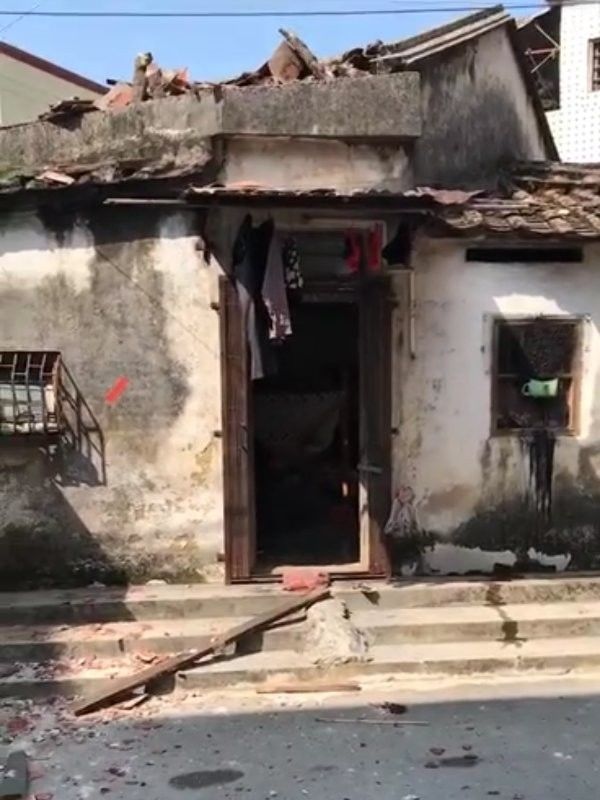 從網(wǎng)友提供的事故現(xiàn)場視頻中我們可以看到,該棟民宅的屋頂嚴(yán)重受損,大面積的瓦片被炸飛,掉落在大門口附近。